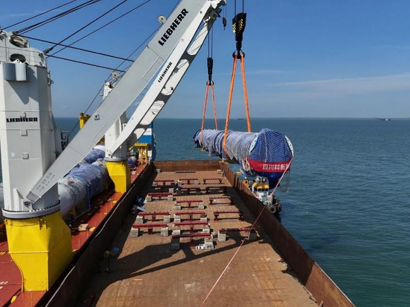 在投标初期,项目团队便深入印尼巨港项目地,耗时1个多月完成了从锚地-港口-项目地承载力评估、港口作业条件、道路条件、海事政策解读等多项专项研究。在执行阶段,团队整合全集团优势资源,从发货工厂技术交流、设备催交及驳运,到自营重吊船运输直航巨港,再到重大件过驳最后滚卸就位,通过“零差错”现场督导,确保了从发货工厂到上海港装船,再到巨港项目现场就位的全链条精准衔接。