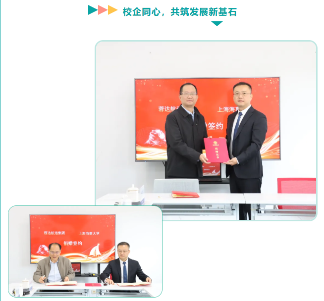 Winter Sunshine Illuminates a Magnificent Chapter; University-Enterprise joined hearts to embark on a new journey. On the morning of December 10, Rongtua Shipping Group and the Education Development Foundation of Shanghai Maritime University jointly held a grand donation signing ceremony at Shanghai Maritime University. In the afternoon of the same day, the "Rongtua Shipping Cup" Campus Fitness Run Event was also successfully launched. Representatives from both the enterprise and the university gathered together to witness this important moment of deepening cooperation and pursuing shared development. Hand in hand, the enterprise and the university took a solid step forward, infusing this winter day with positive energy.